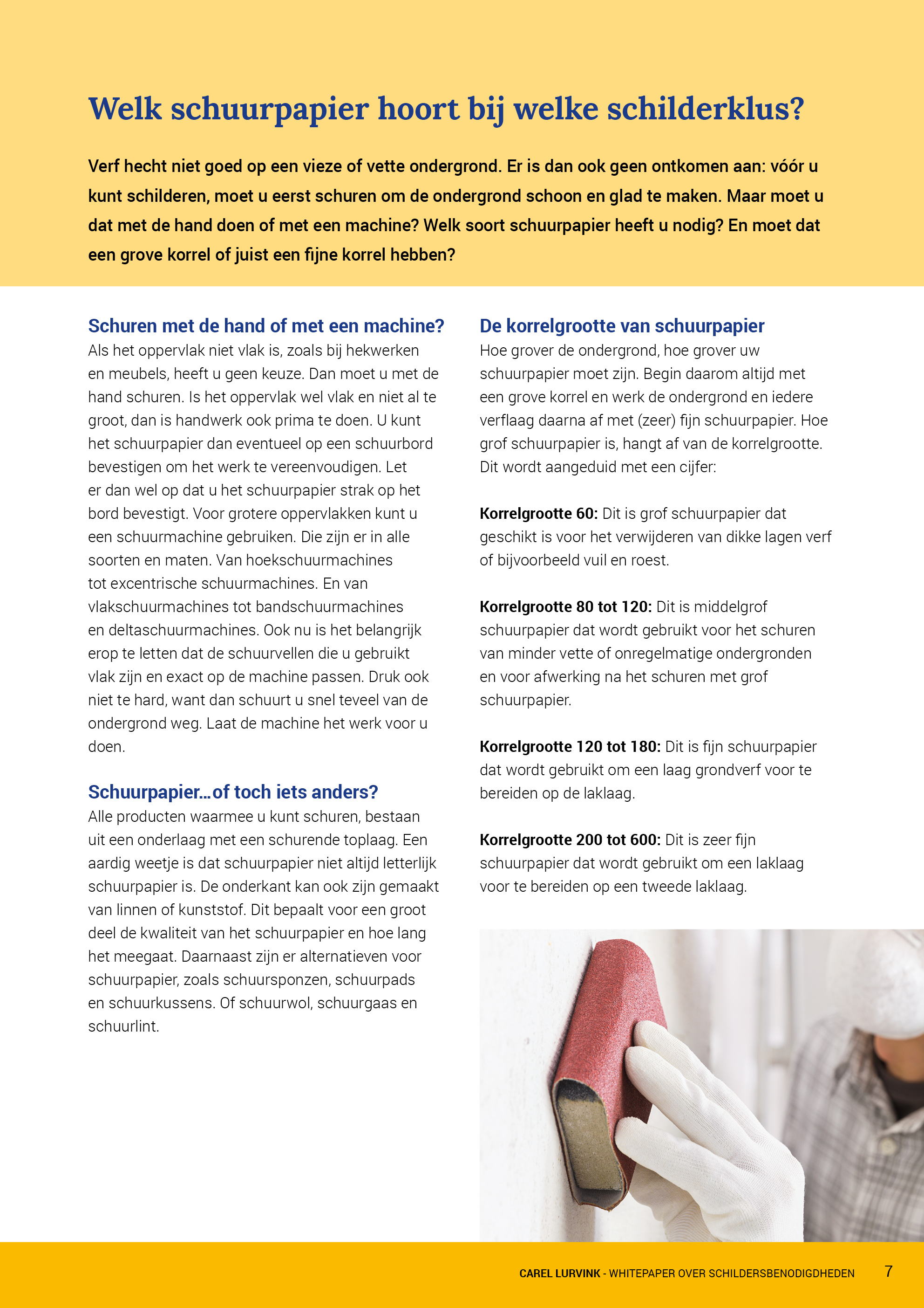 Verf hecht niet goed op een vieze of vette ondergrond. Er is dan ook geen ontkomen aan: vóór u kunt schilderen, moet u eerst schuren om de ondergrond schoon en glad te maken.